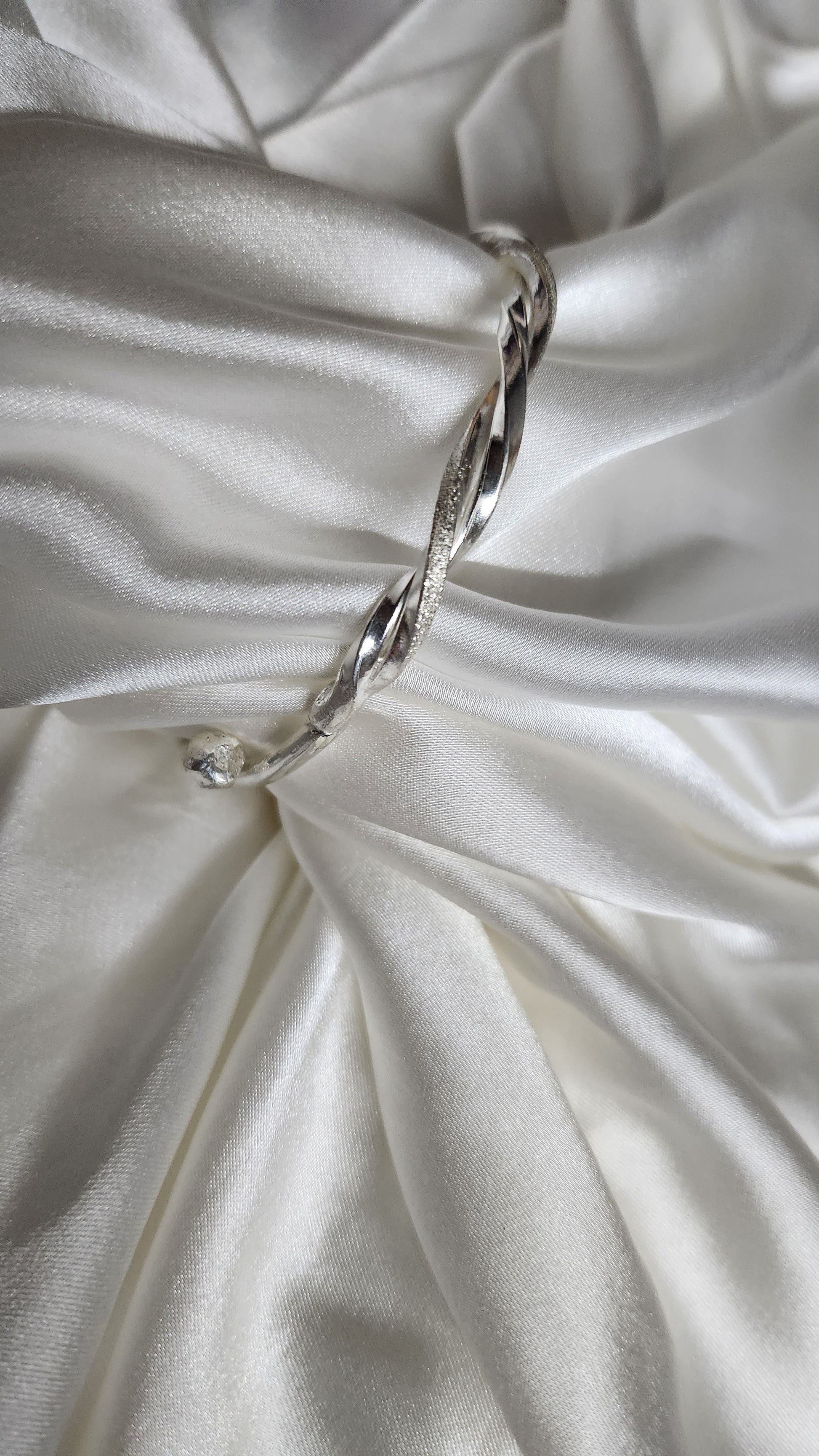 Dual-Twist Bangle Bracelet | Polished & Textured Silver Finish